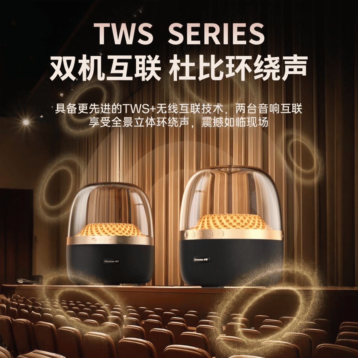 品牌介绍:哈曼卡顿是哈曼国际旗下的高端音响品牌,以设计感和声学技术闻名。它的Aura系列“音乐琉璃”音箱,堪称“桌面艺术品”,将水流波纹灯光与透明箱体结合,颜值超高,音质也以清澈、空灵著称。
